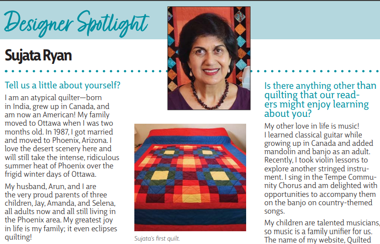 Sujata was featured for an interview in the Designer Spotlight in Quiltmaker Fall 2025!