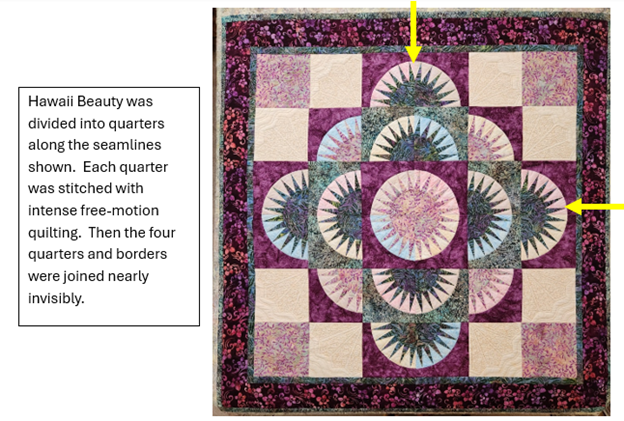 Tackle quilting a queen-size quilt by quilting smaller sections of it, then joining them together with seams that are nearly invisible on the back! Learn two techniques in this article that will unlock your quilting potential, especially for free-motion quilting of smaller spaces. Save money too by doing your own quilting instead of hiring a longarm quilter!